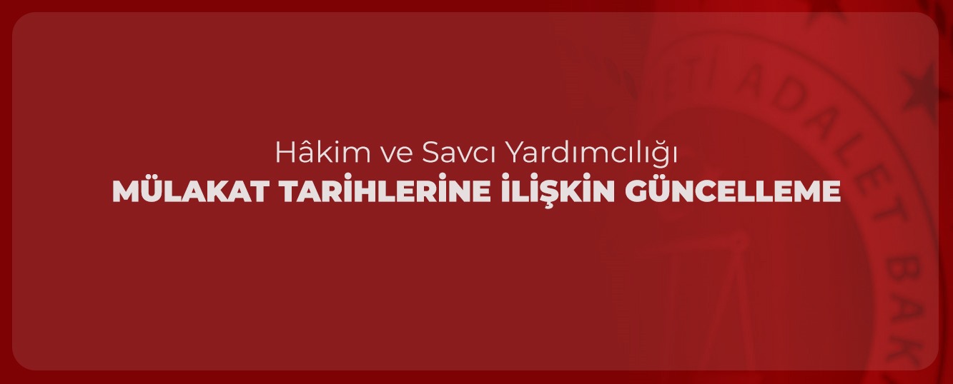 Hâkim ve Savcı Yardımcılığı Yazılı Yarışma Sınavı (20–21 Aralık 2025) sonucuna göre başarılı olan adaylar, soru iptali nedeniyle yeniden değerlendirme yapılan adaylar (21–22 Aralık 2024) ile hukuk alanında doktora yapmış olup mülakata katılmaya hak kazanan adayların mülakat tarihleri Genel Müdürlüğümüz internet sitesinde daha önceden ilan edilmiştir.