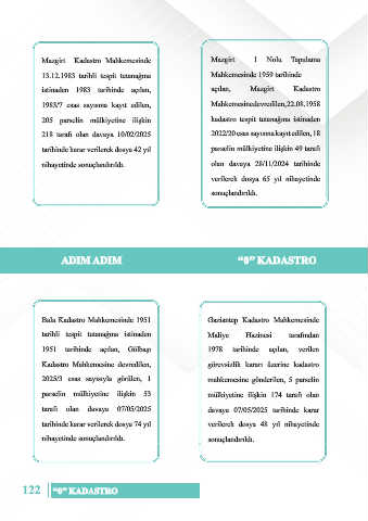 122 ‘‘0’’ KADASTRO ADLİ TEŞKİLAT DİJİTAL BÜLTEN 123