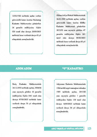 122 ‘‘0’’ KADASTRO ADLİ TEŞKİLAT DİJİTAL BÜLTEN 123
