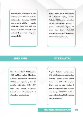 130 ‘‘0’’ KADASTRO ADLİ TEŞKİLAT DİJİTAL BÜLTEN 131