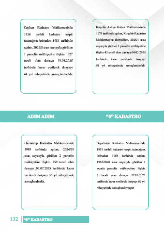 132 ‘‘0’’ KADASTRO ADLİ TEŞKİLAT DİJİTAL BÜLTEN 133