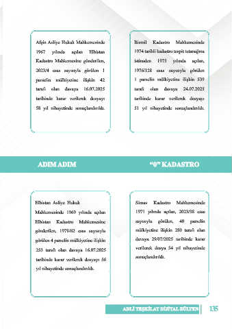 134 ‘‘0’’ KADASTRO ADLİ TEŞKİLAT DİJİTAL BÜLTEN 135
