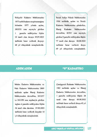 136 ‘‘0’’ KADASTRO ADLİ TEŞKİLAT DİJİTAL BÜLTEN 137
