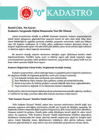 Adalet hizmetlerinde etkinlik ve şeffaflık ilkesinden hareketle, kadastro yargılamalarında